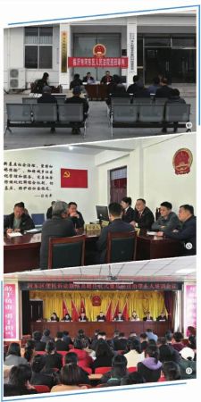 圖②:湯頭法庭庭長、派出所所長、司法所所長、鎮街副鎮長“四長”協同,促成三方土地承包糾紛達成調解。