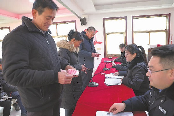 近日,山東省夏津縣人民法院舉行工人工資集中兌付儀式,向張某全等40名申請(qǐng)執(zhí)行人兌付執(zhí)行案款23.89萬(wàn)元。兌付現(xiàn)場(chǎng),執(zhí)行干警認(rèn)真核對(duì)當(dāng)事人的身份證、案款發(fā)放數(shù)額、銀行卡等信息,確保案款發(fā)放流程公開(kāi)、透明、高效。今年12月以來(lái),該院開(kāi)展治理欠薪專項(xiàng)行動(dòng)3場(chǎng),為90余名當(dāng)事人追回勞動(dòng)報(bào)酬共計(jì)180余萬(wàn)元。圖為當(dāng)事人清點(diǎn)錢款。